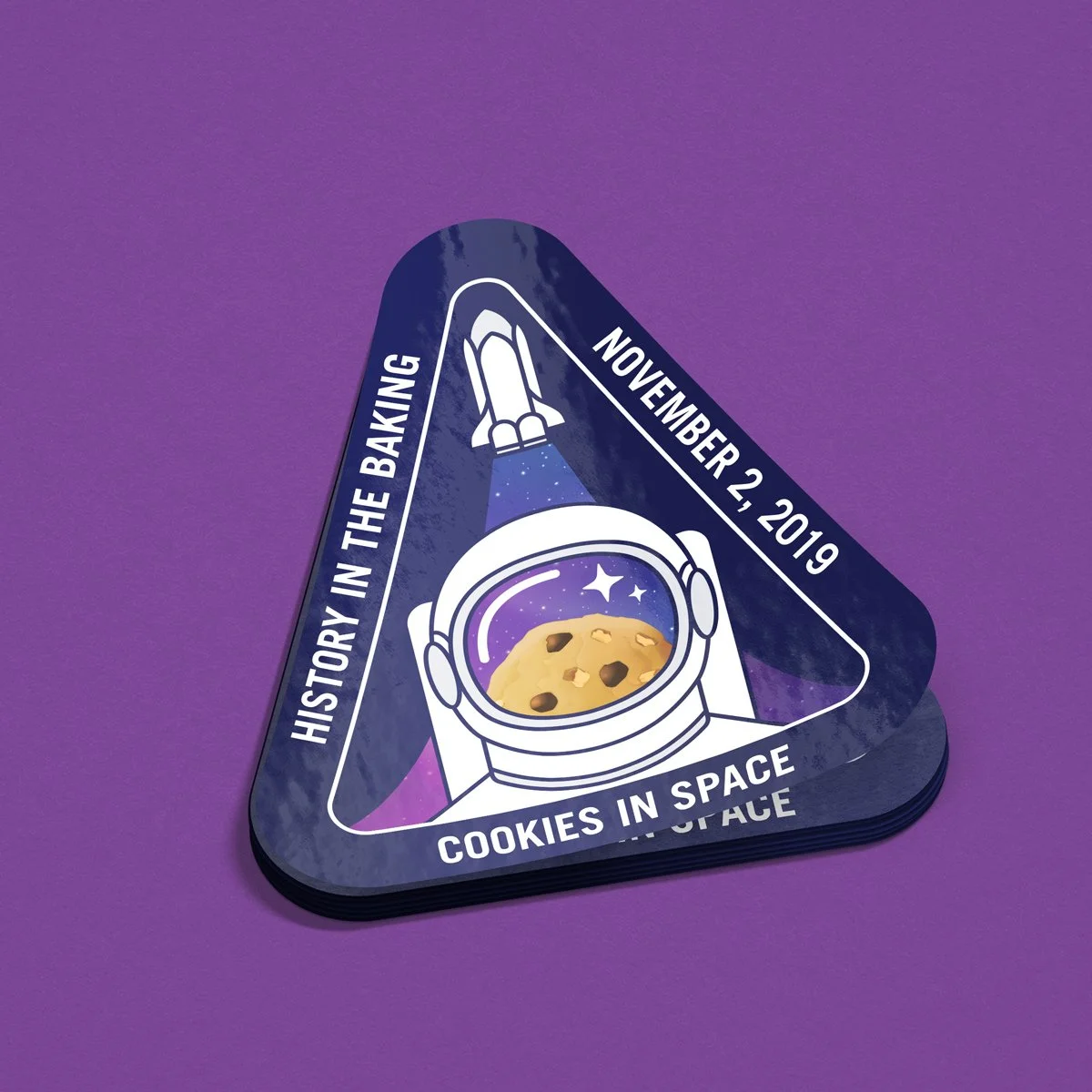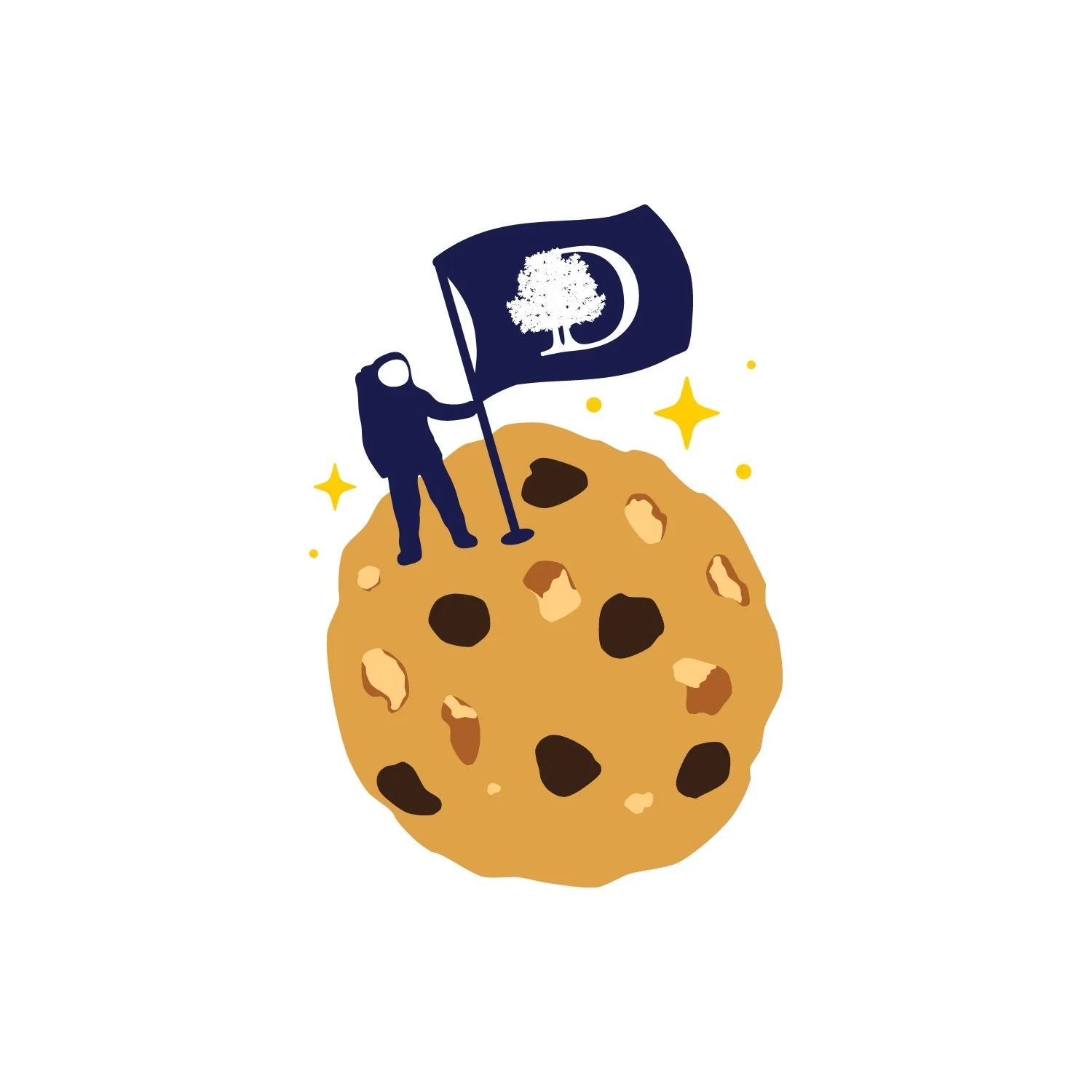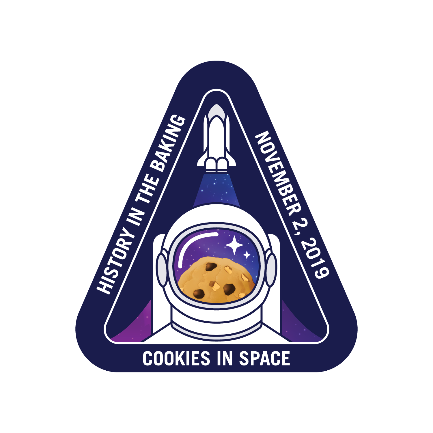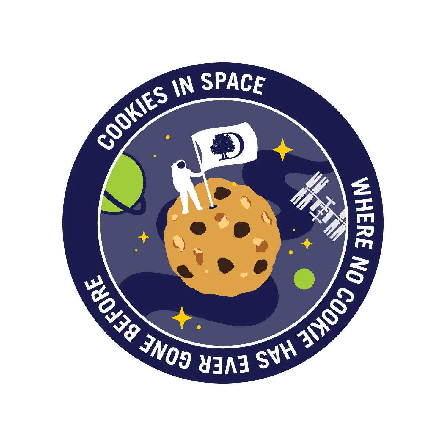 Design a commemorative logo for DoubleTree by Hilton’s signature chocolate chip cookie, celebrating its planned induction into the National Air and Space Museum as the first food baked in space.